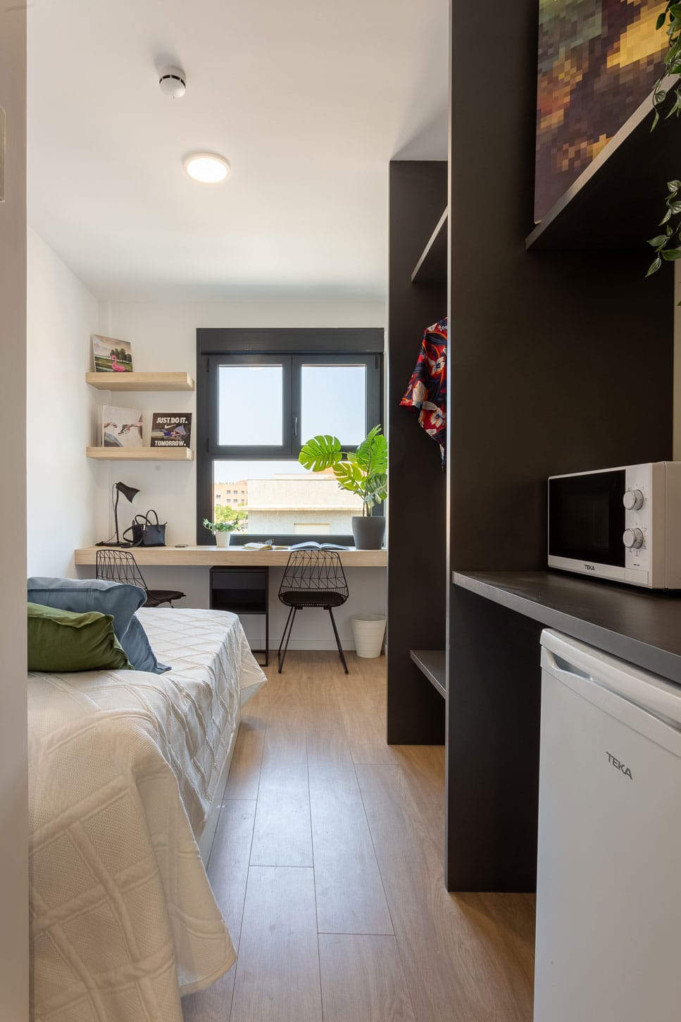 In an unbeatable setting, located in the city of Salamanca, which, after Bologna and Oxford, contains the oldest university in Europe, we were faced with the complex challenge of transforming a building under construction initially conceived as an apartment block into a modern student residence.