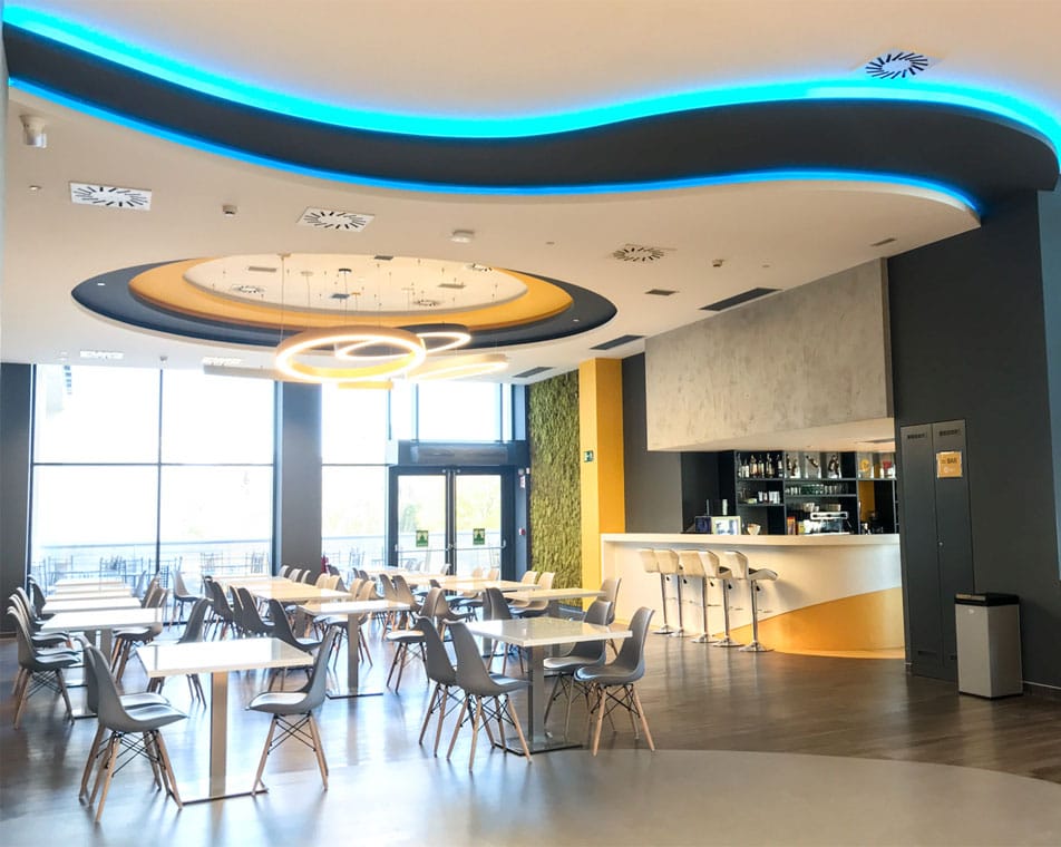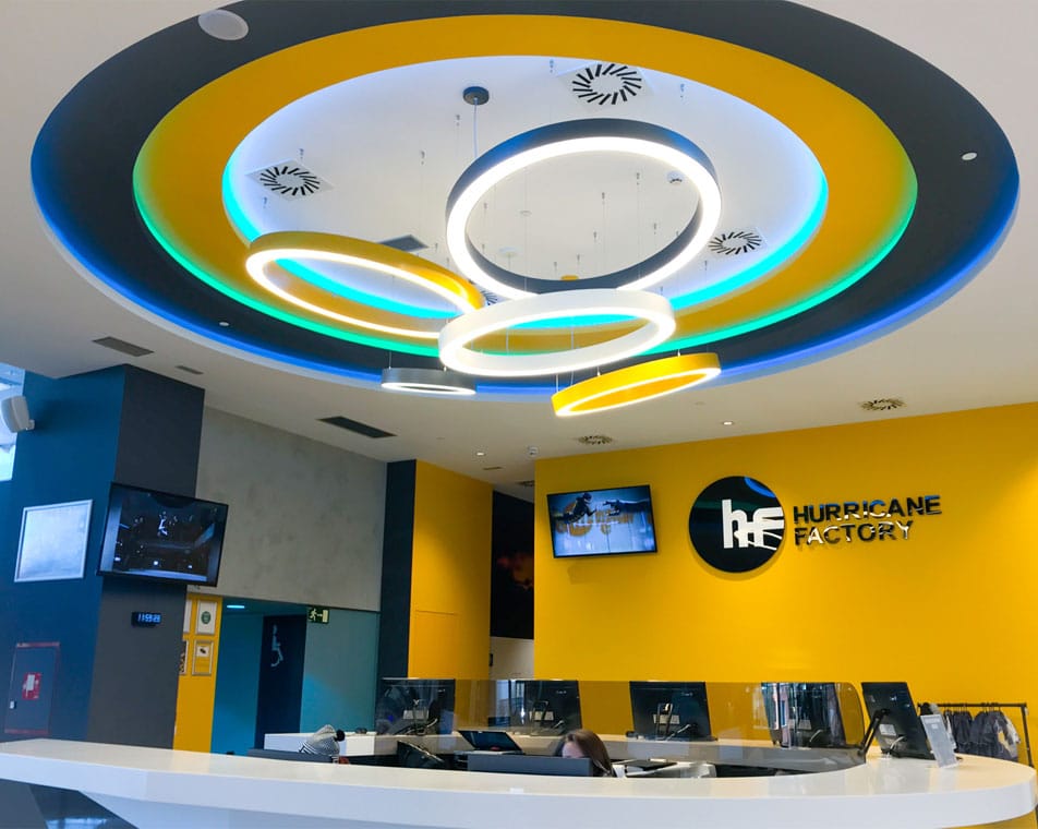Complete design and construction management for the premises housing a restaurant and the Wind Tunnel with the widest cabin width in Europe and two turbines. A wind tunnel open to both the mall and the street, with a concept that invites not only flying but also observing.