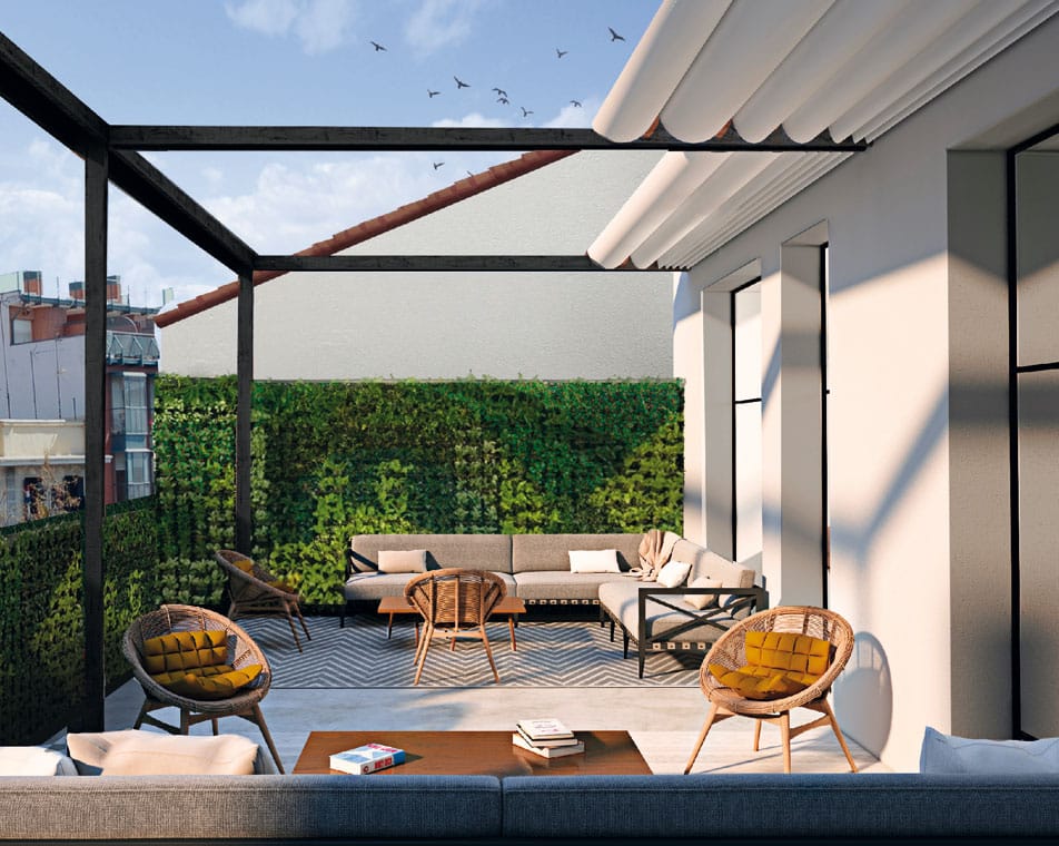 Espacios adaptados a las comodidades modernas, tres plantas independientes disponibles con posibilidades de reforma de acuerdo a las necesidades de cada cliente y una cuarta planta de uso común con todos los servicios: salas de reuniones, zona lounge, zona de vending y terraza. Diseño moderno e innovador, todas las comodidades que requiere un espacio de oficinas en la actualidad.