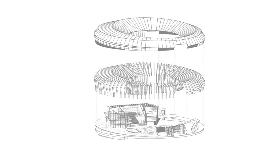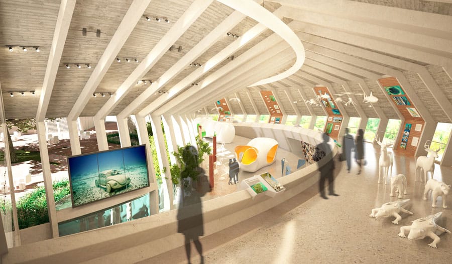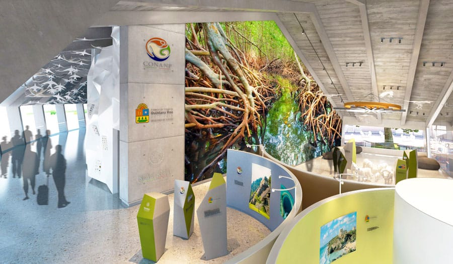En colaboración con el equipo de Kince Arquitectura participamos en el proyecto del Parque Cancún. Diseñando el Museo de la biodiversidad. Dentro de un privilegiada emplazamiento se planificó para que el diseño tuviera el menor impacto. Un proyecto basado en la anatomía de la serpiente, icono de la civilización Maya, plantea un recorrido circular de las exposiciones. El esqueleto de la serpiente inspira la geometría del museo que gracias a tecnología de familias paramétricas mediante softwares BIM, se pudo conceptualizar cada costilla y panel prefabricado de hormigón. A modo de escultura sobre el manglar, el museo con materiales prefabricados de bajo mantenimiento se mantiene abierto a la naturaleza que permea en su interior.
